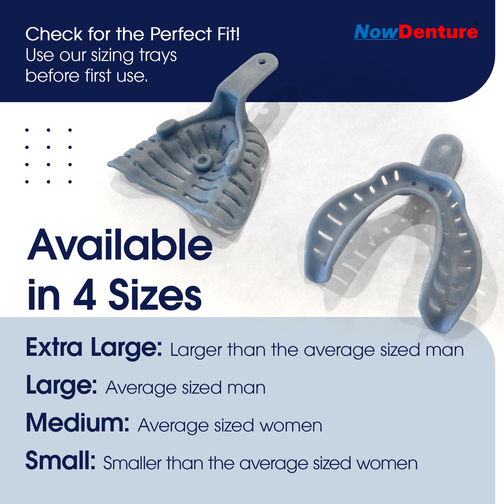 Don’t worry! At no extra cost we include FITTING TRAYS inside your order so you can try the sizing first before opening the separately packaged sealed dentures.